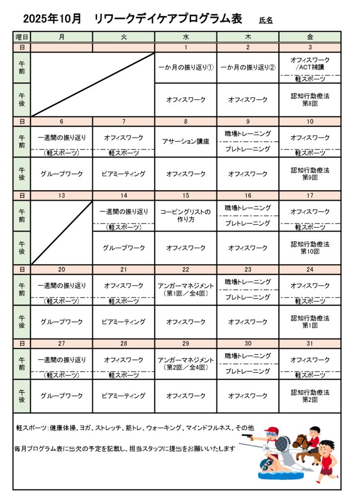 今月のプログラム(リワーク)